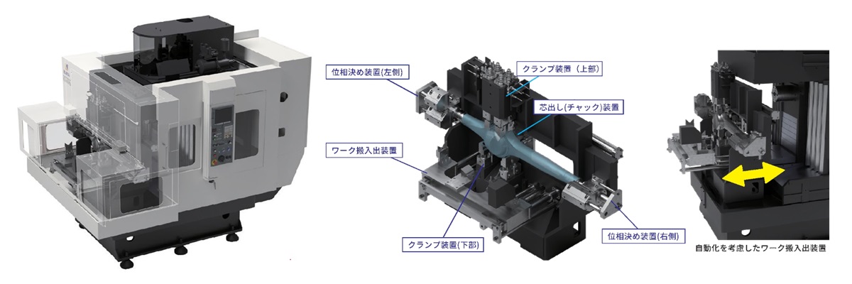 アクスルハウジング加工に特化した超省スペースマシニングセンター